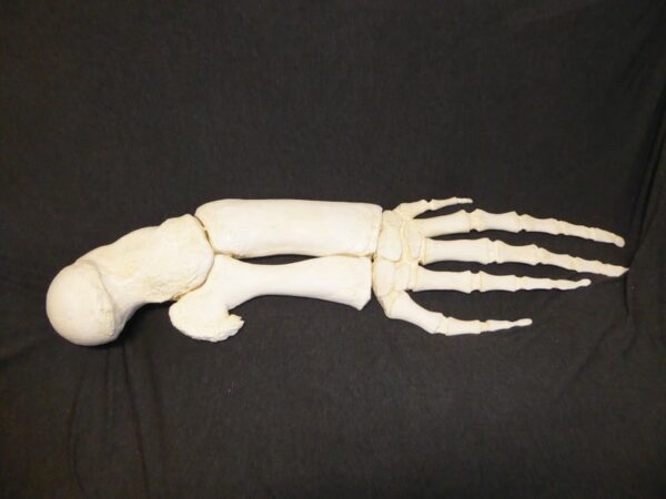 Bairds Beaked Whale Flipper & Ulna Replica measures 37 x 12.5. Bairds Beaked Whale Flipper Replica is museum quality polyurethane resin cast made in USA. Cast of original California Academy of Sciences specimen. Weight of flipper is 11 pounds, ship weight is 30 pounds.