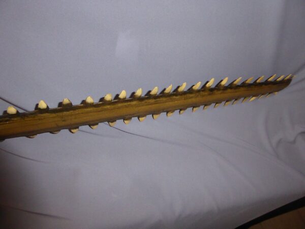 Sawfish Rostrum Replica measures 30 x 4 x 1 inches. Largetooth Sawfish Rostrum Replica is museum quality polyurethane resin cast. Made in USA.